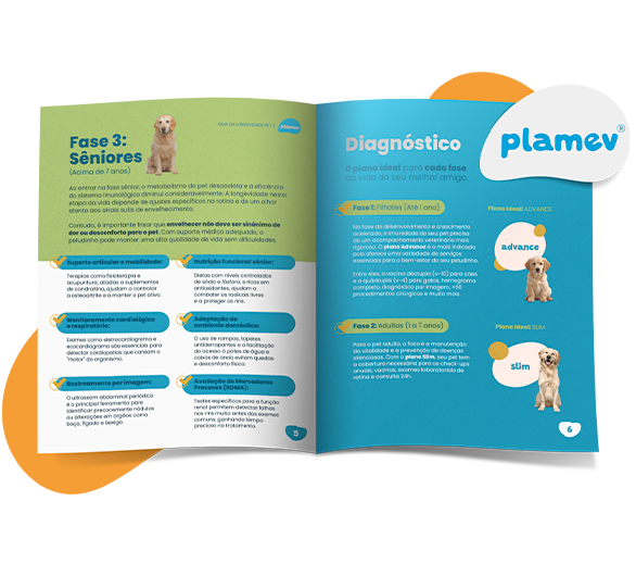 Baixe agora o Guia da Longevidade Pet da Plamev e veja como garantir o melhor para o seu peludinho, do primeiro suspiro à melhor idade.