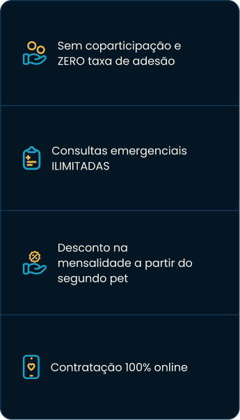 Um único plano que cobre tudo que seu pet precisa e garante tranquilidade para você e saúde para seu pet.